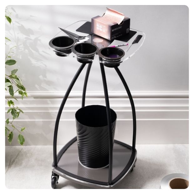 עמדת הצבע The Write & Wipe Colouring, היא המלווה האולטימטיבית לכל מעצב שיער. עגלה חדשנית זו מבטיחה שלעולם לא תשכחו שוב מספר צבע או העדפות הלקוח או כל הערה חיונית, ומספקת חוויה חלקה ויעילה במספרה. העגלה מצוידת בגלגלים שנועדו לעמוד בפני הצטברות שיער, מה שמבטיח תנועה חלקה וללא מאמץ בכל המספרה. העגלה בנויה לעמוד בדרישות של סביבת עבודה עם צבעי שיער, עמידה בכתמים ושמירה על מראה נקי ומקצועי. משטח נוח לכתיבה ניגוב ומחיקה, ארגון וסידור כלי העבודה בנוחות מרבית, כוללת פח ייעודי עבור פסולת, קערות ומברשות צבע יוקרתיות,ועיצוב אלגנטי ויוקרתי המוסיף תחכום וסטייל לסביבת העבודה שיספק חוויה מעולה ללקוחות. הישארו יעילים, מקצוענים ומודעים לסביבת העבודה עם העגלה היעילה הנוחה והאלגנטית ביותר- המיועדת לספרים ומעצבי שיער המקצועיים ביותר.